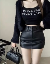 ❤︎ シックでスタイリッシュなレザーハイウエストミニスカート