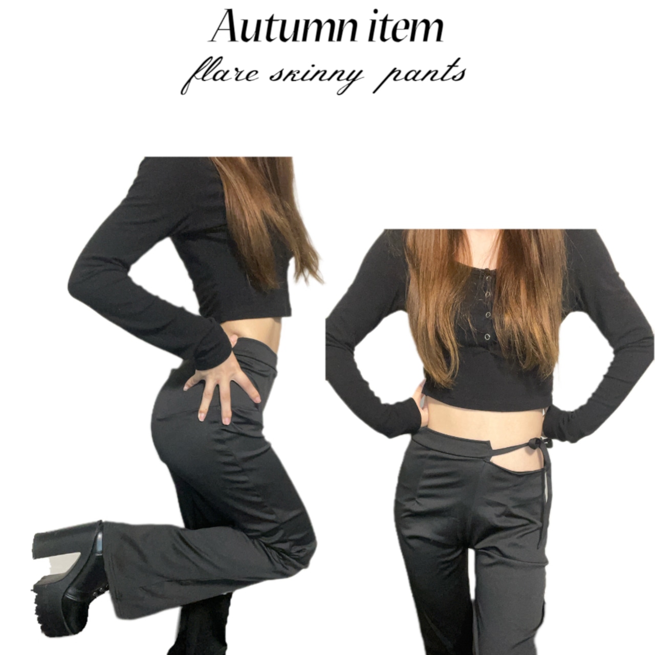 ❤︎ シルエットにこだわったフレアスキニーパンツで、スタイリッシュな印象。