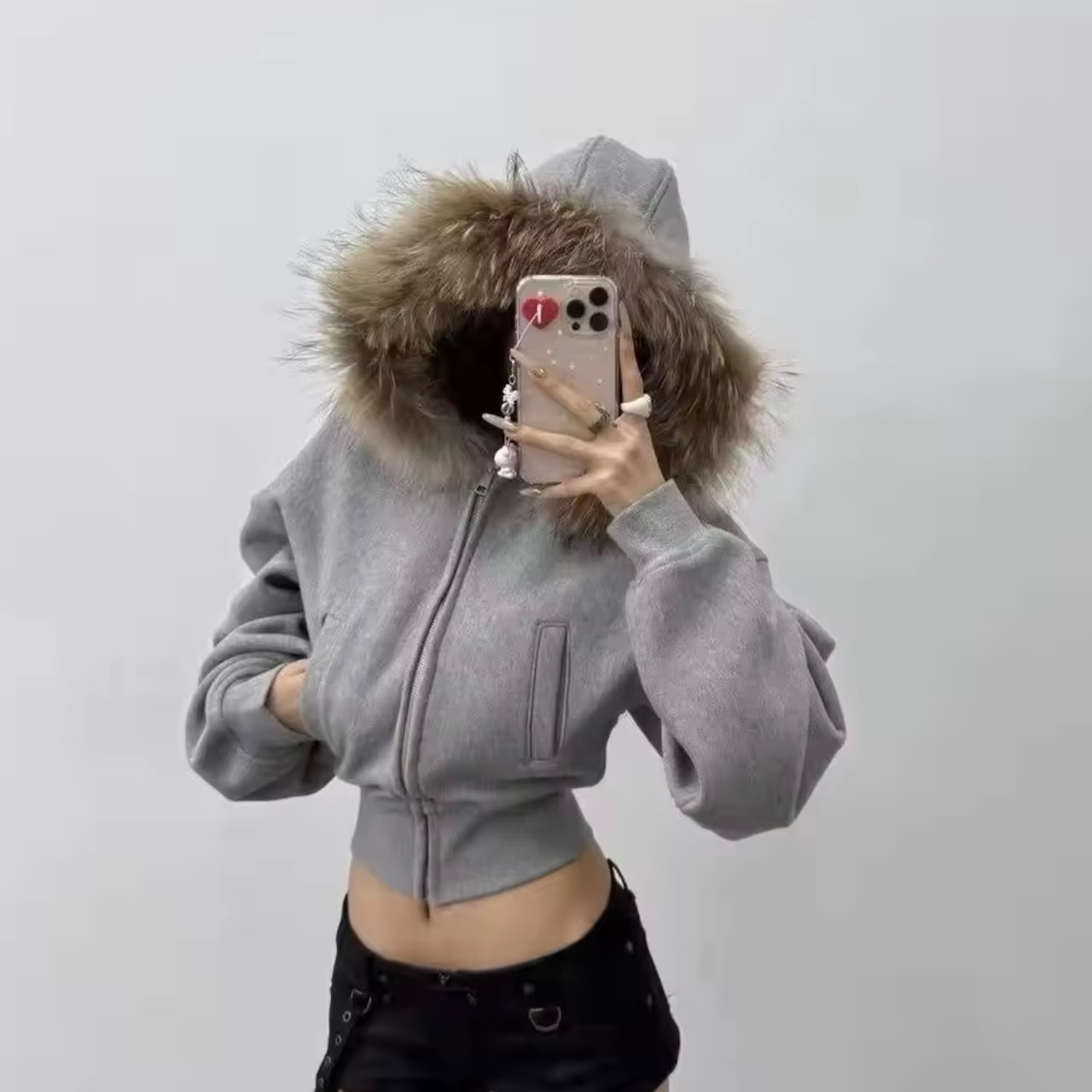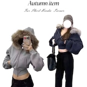 ❤︎ トレンドのファー素材を使用したショートフーディパーカー。柔らかな肌触りと保温性に優れており、寒い季節も快適に過ごせます。カジュアルなコーディネートにぴったりで、デイリーに活躍する一着です❤︎